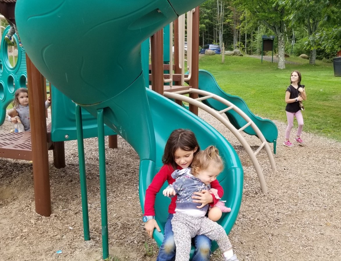 Families from Peru and Winslow play Tuesday at Bass Park in Wilton.