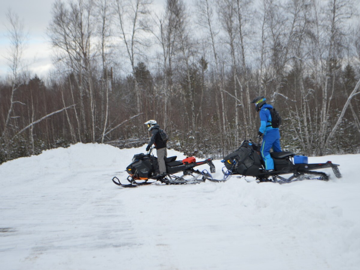 Cody York and Brett Hunt, both of Jay, ride mountain snowmobiles made for steep trails and deep snow.