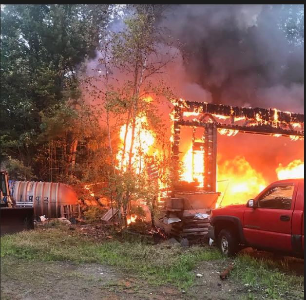 Fire Rescue Chief Michael Booker said Monday that the cause of a fire destroyed Carl Badeau’s garage and tools on Warren Hill Road in Jay on Friday is undetermined because of the extent of damage. State fire investigators were at the scene Monday. (Michael Booker photo)