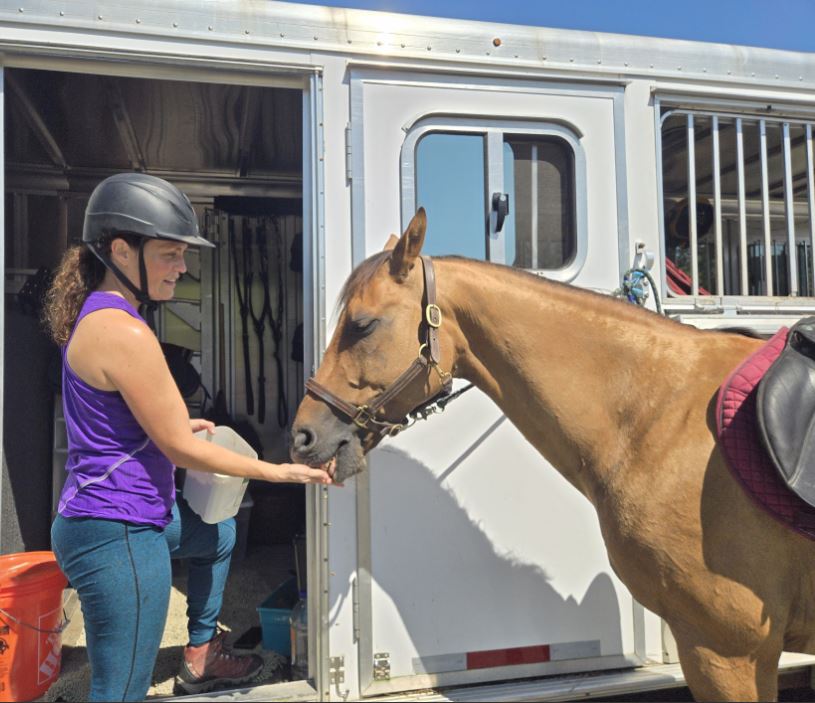 Lorien Batt of Wilton and her quarter horse, Obi, 17, rode a trail to the top of Titcomb Mountain on Tuesday.