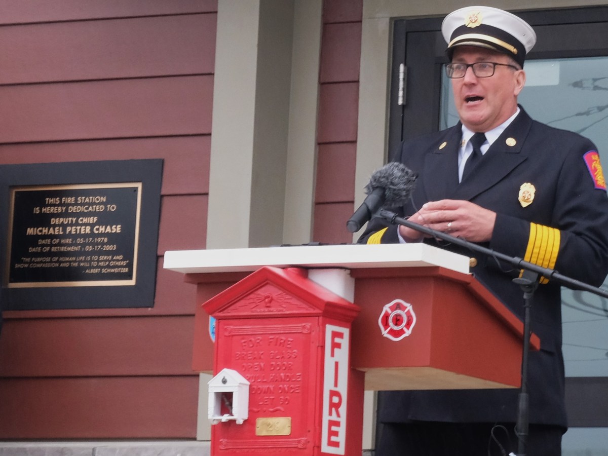 Auburn Fire Chief Bob Chase thanked town officials for honoring his late father and U.S. Sen. Susan Collins for her support of the fire service.