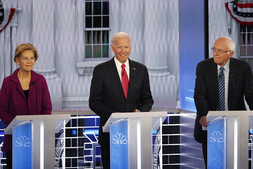 Elizabeth Warren and Bernie Sanders, representing the most progressive wing of the party, defend their plans for a public system, while Joe Biden says many people are happy with their private insurance.