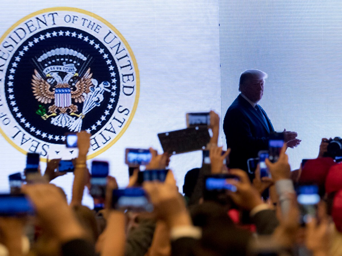 Conservative group fires aide after Trump speaks in front of mock presidential seal