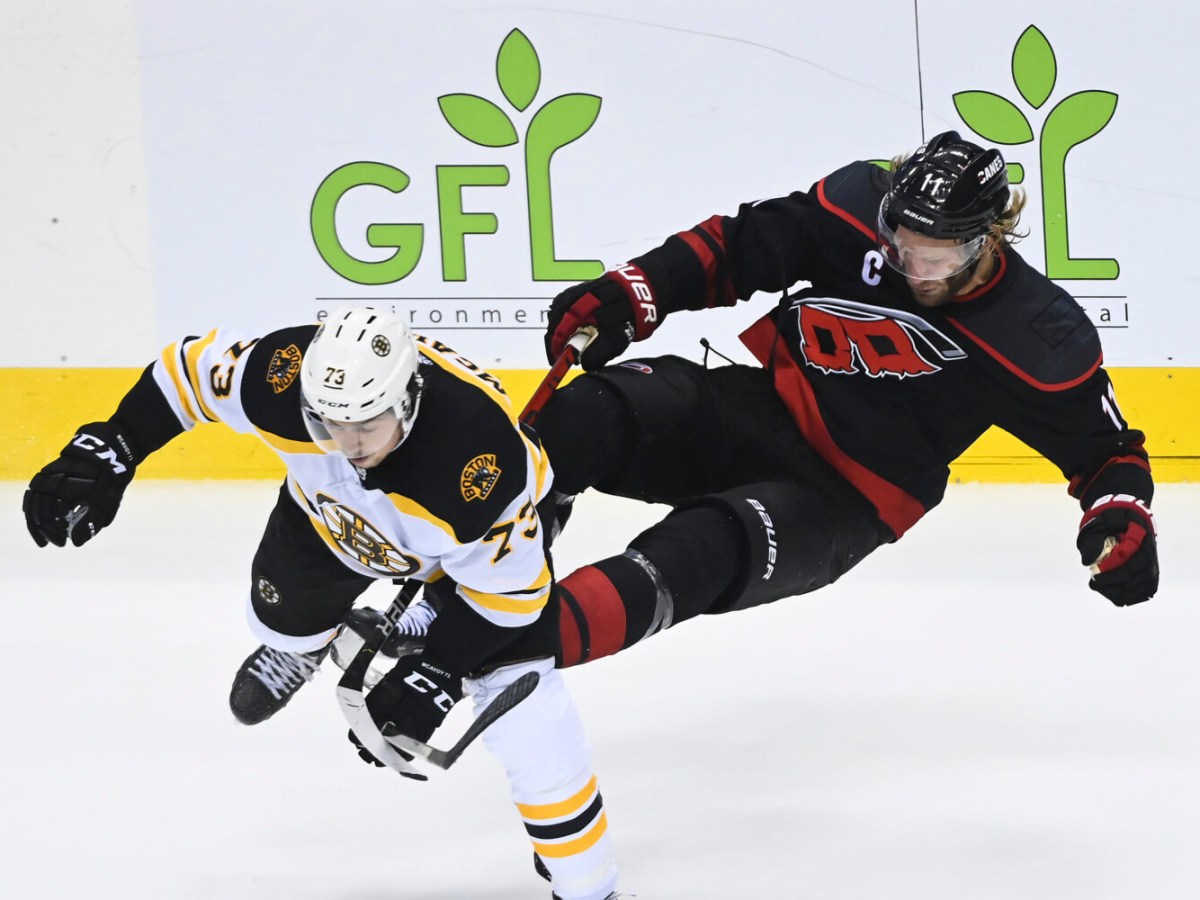 Bergeron, Bruins beat Hurricanes 2-1 to advance in playoffs