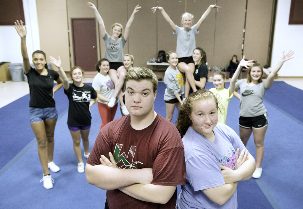 High school cheering: Umberhind and Dulac trade in their football pads for pompoms