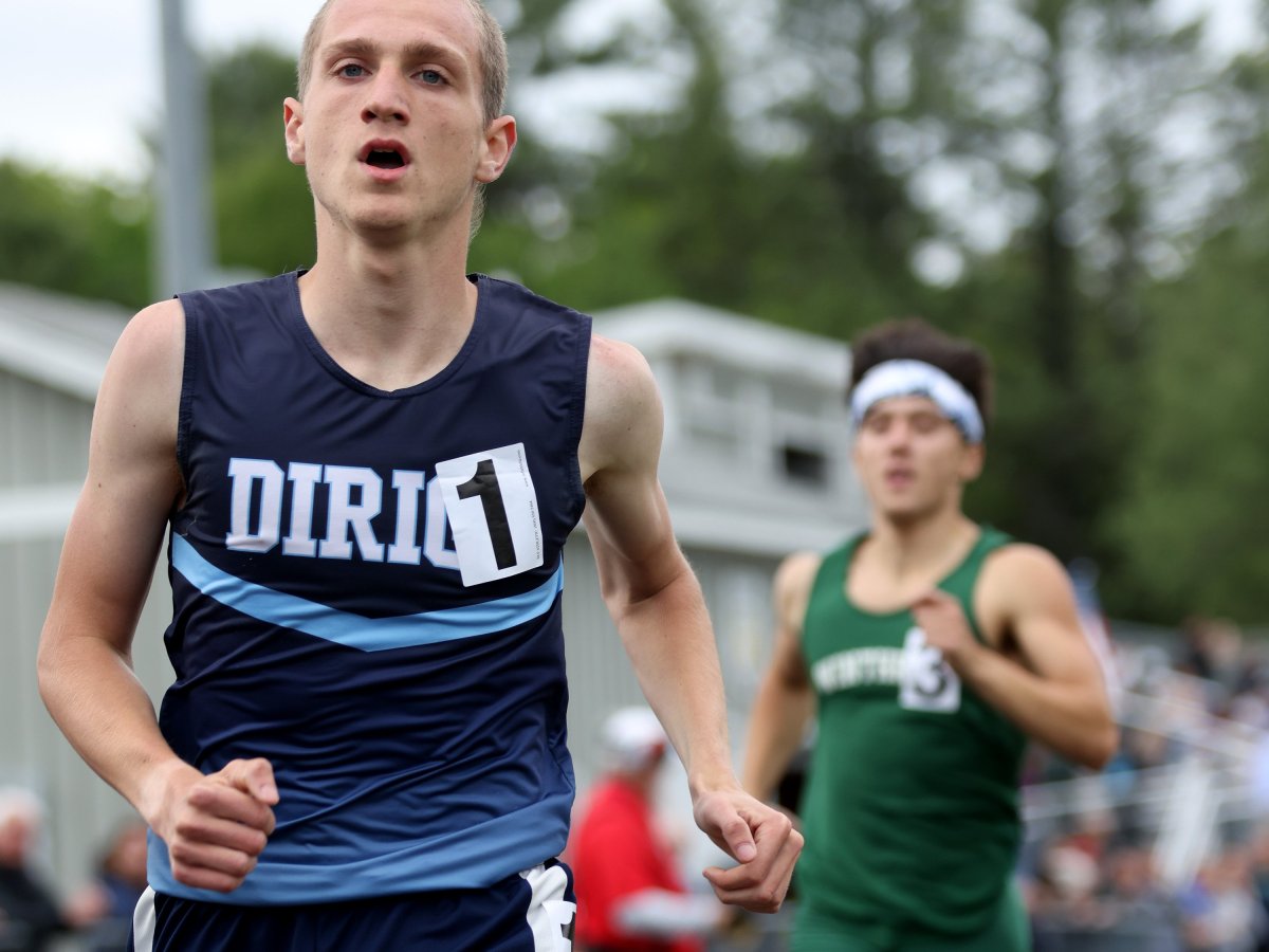 Nora Schmidt of Portland and Alex Gilbert of Freeport win the girls and boys seeded races at the annual meet.