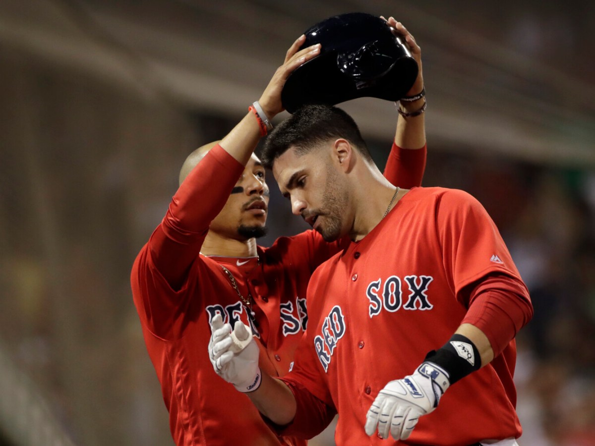 J.D. Martinez also hits two doubles and drives in four runs in Boston’s rout.