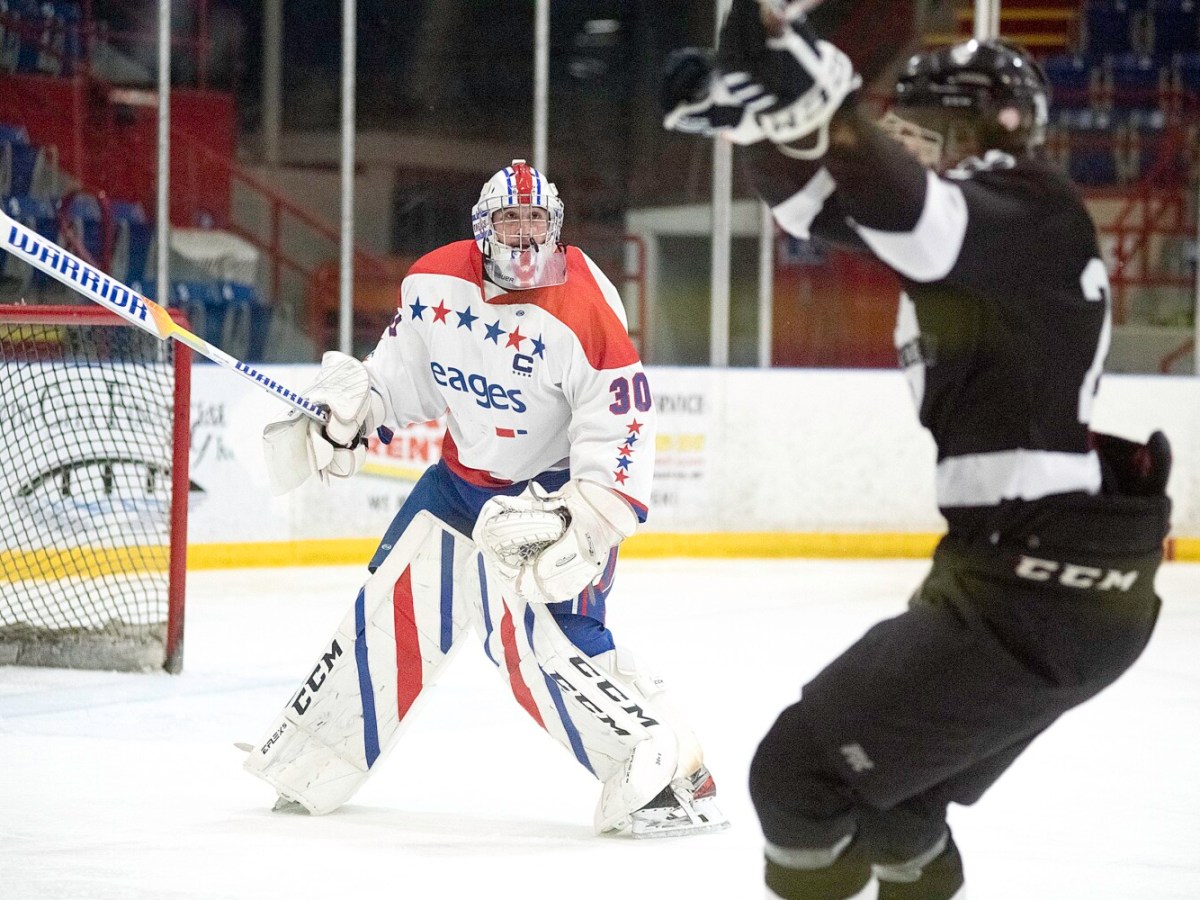 Boys hockey: The senior, who is the nephew of a St. Dom’s legend, stops 38 of 40 shots in the Eagles’ first-ever win over the Saints.