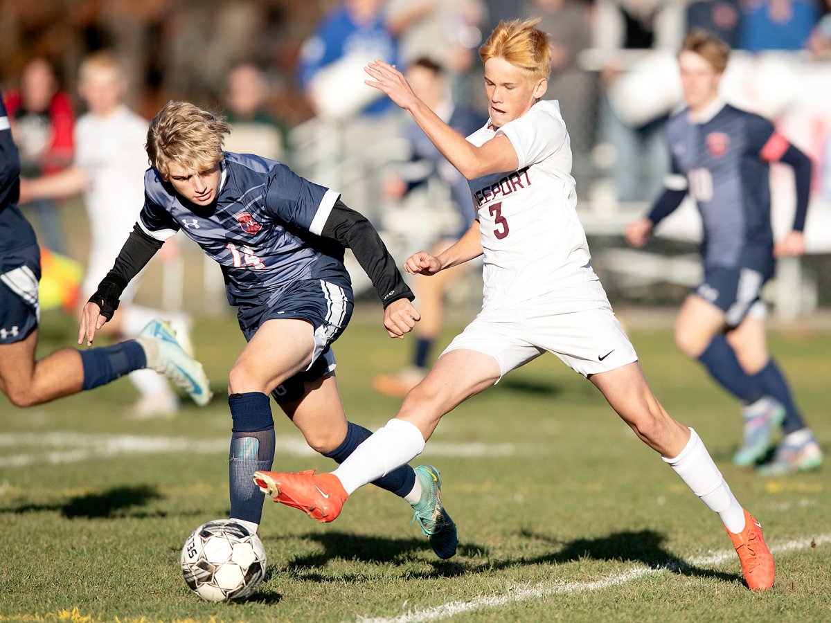 Junior Jasper Hackett’s header is enough for the Windjammers to win showdown of Class A North’s top teams.