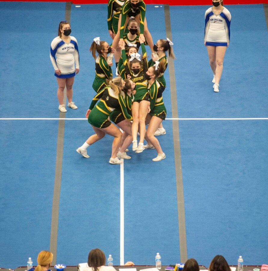 In their first in-person competition in two years, the Greyhounds hit their routine and win the regional championship. Mountain Valley takes third, Spruce Mountain sixth and Dirigo seventh.