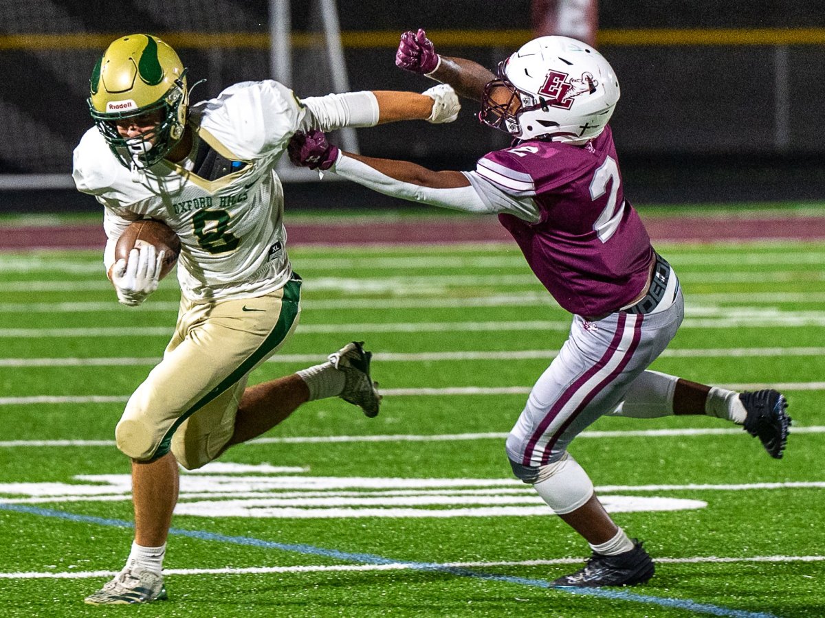Brody Poland returns an interception for a Hornets score, and Damon Martin’s pick-6 was one of four TDs he scored for the Knights.