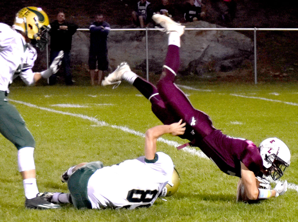 Edward Little High School’s Joshua Hamel, right, gets flipped upside down after attempting to make a catch in front of Oxford Hills’ Talon Mederios (89) during their game at Walton Field in Auburn last year. (Sun Journal file photo) A quick glance at the last decade of the Class A North rivalry between Edward Little […]
