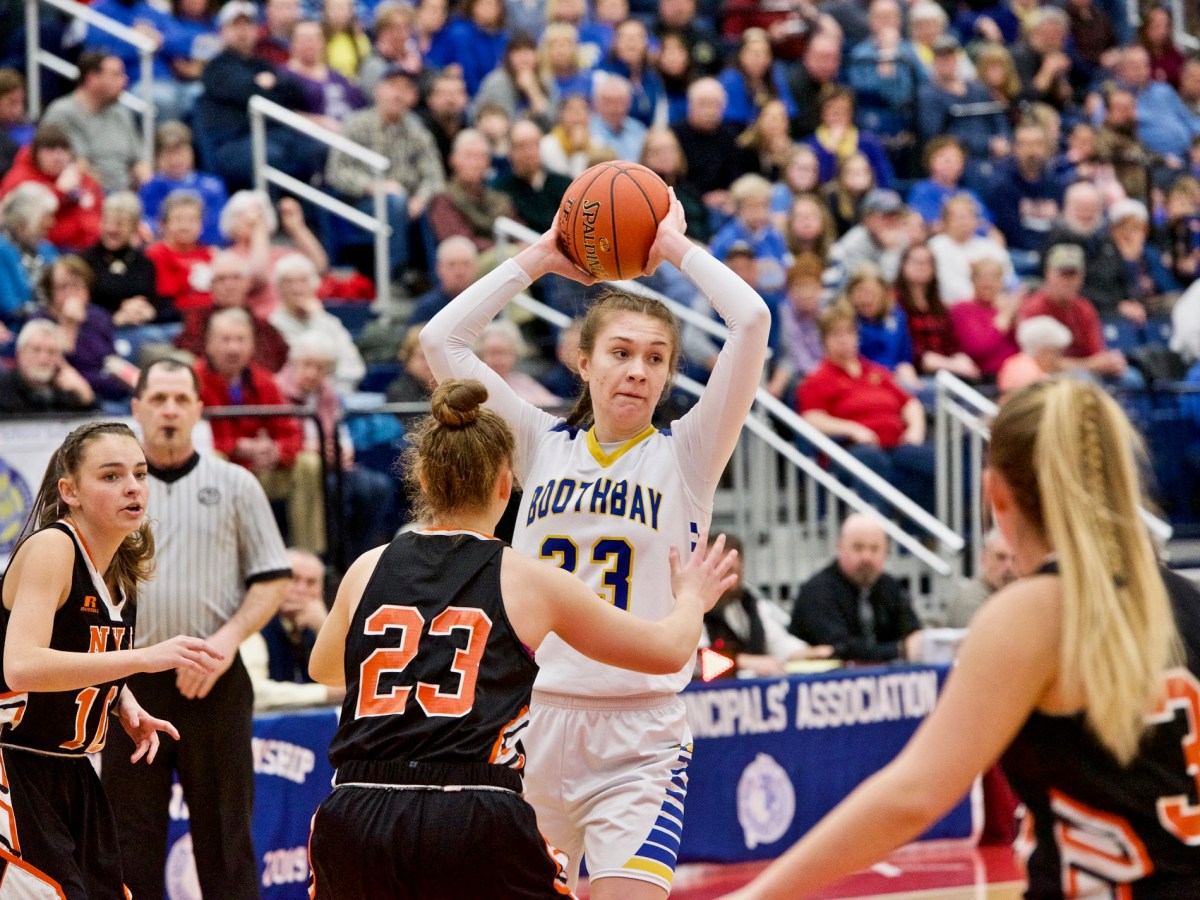 Patriots start fast, Eliza Hotham hits important trey to hold off Freeport in B South final.