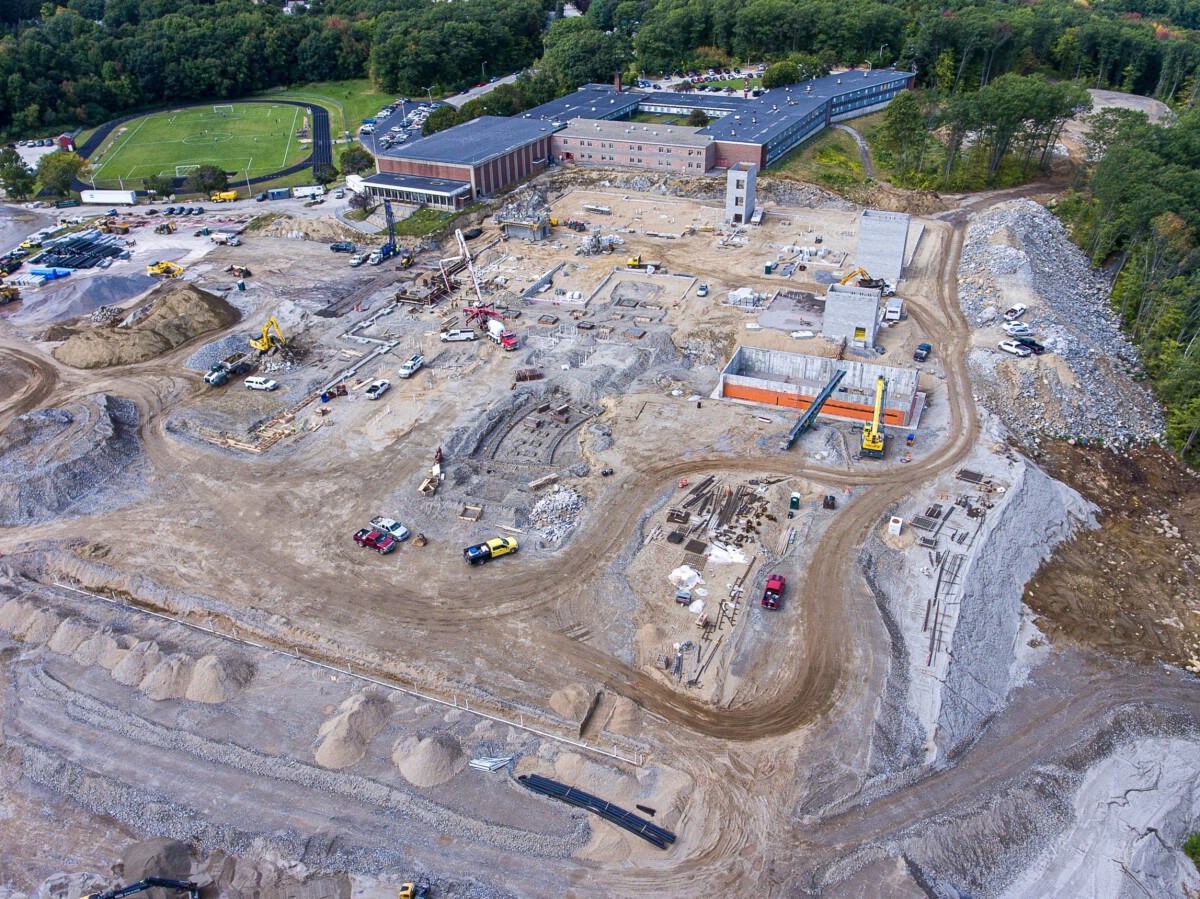 Aerial video and photographs show the construction site Monday morning at the new Auburn school project.