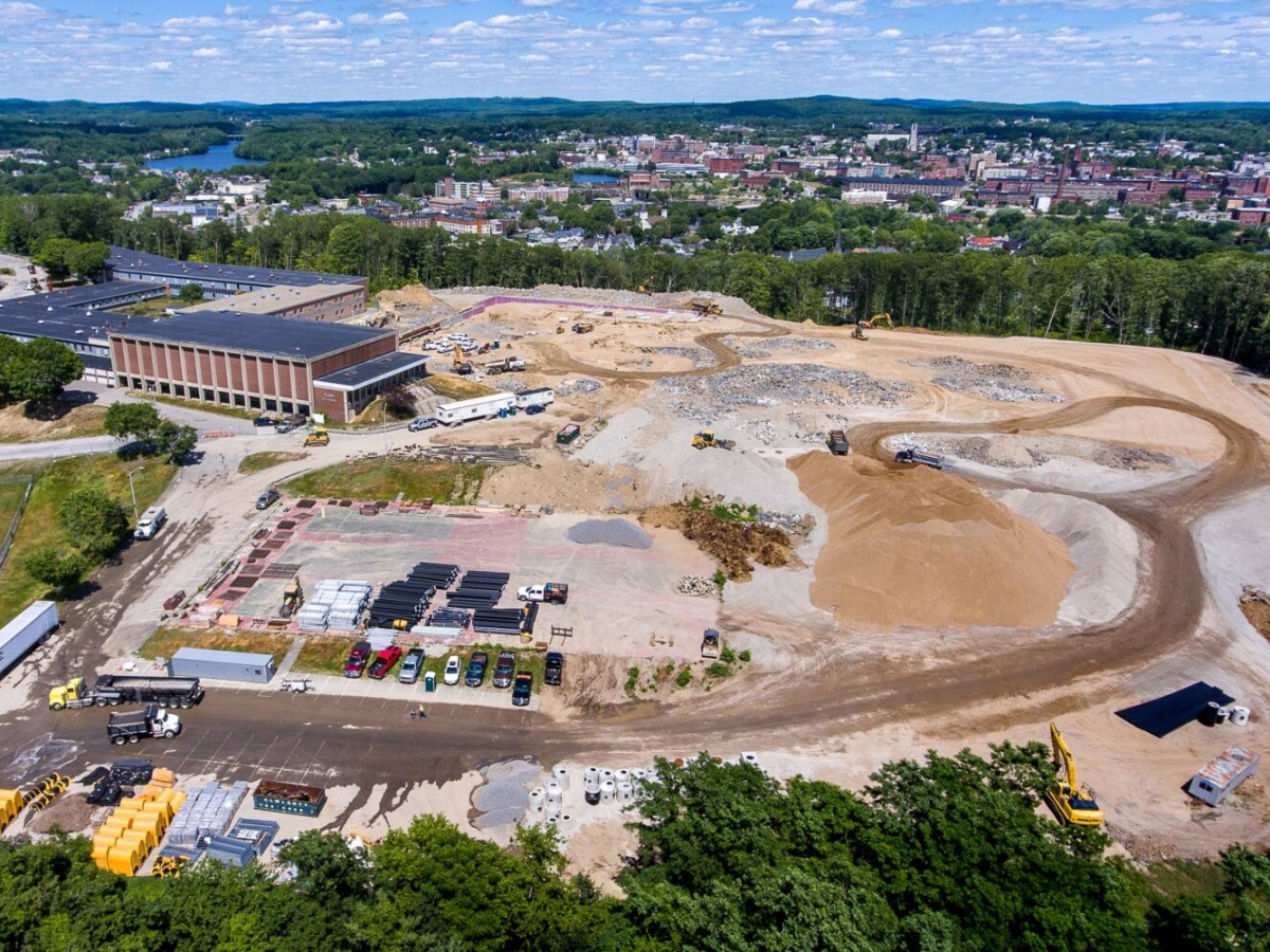 Foundation being built and concrete is pouring at new Edward Little High School.
