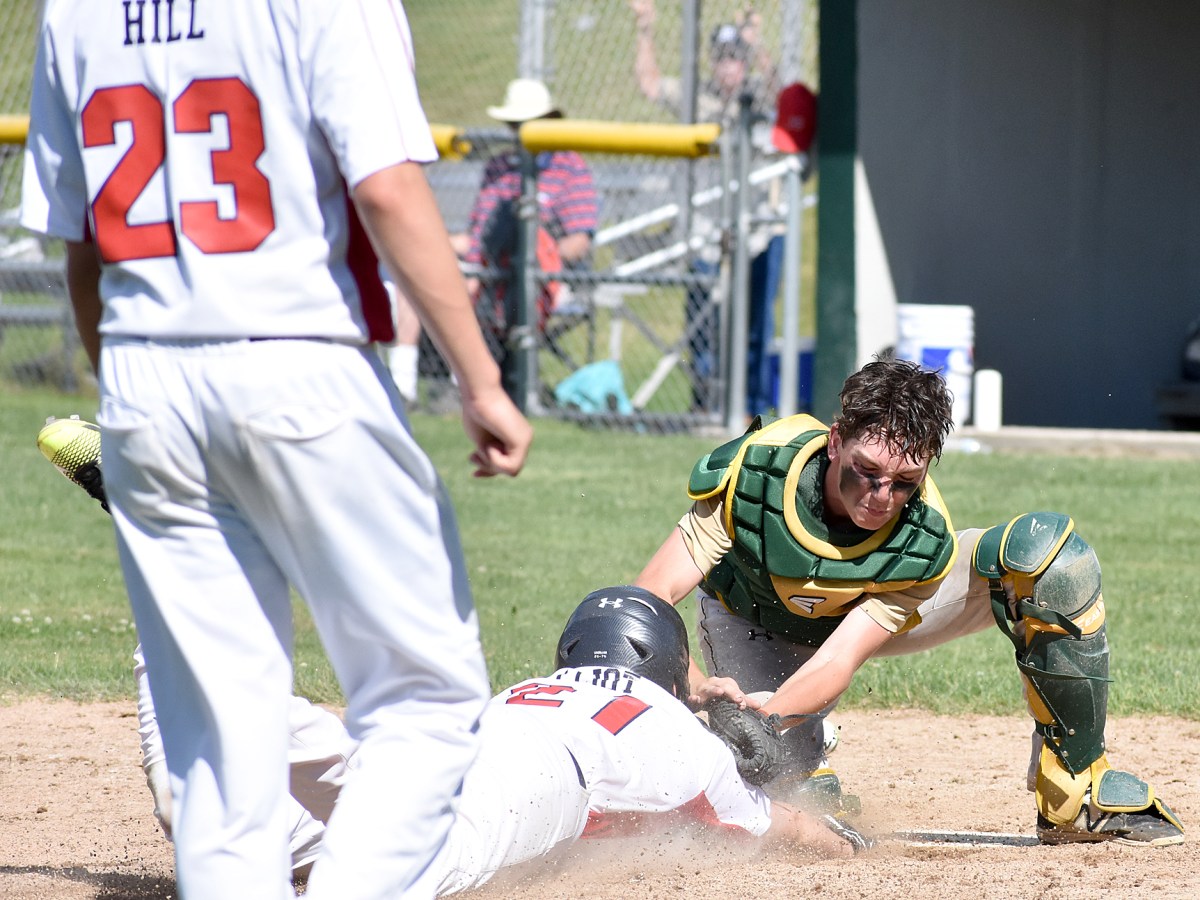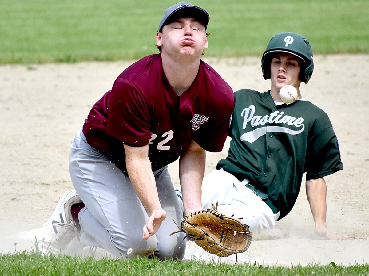 Pastime first baseman Reid Cote waits for the ball as Rogers Post 153’s Mason Brushwein slides back safely during a pickoff attempt during Thursday’s legion game at Auburn Suburban. AUBURN — Very rarely do baseball games turn from pitching duels to slugfests as quickly, and dramatically, as Thursday night’s Roger’s Post and Pastime matchup. Through […]