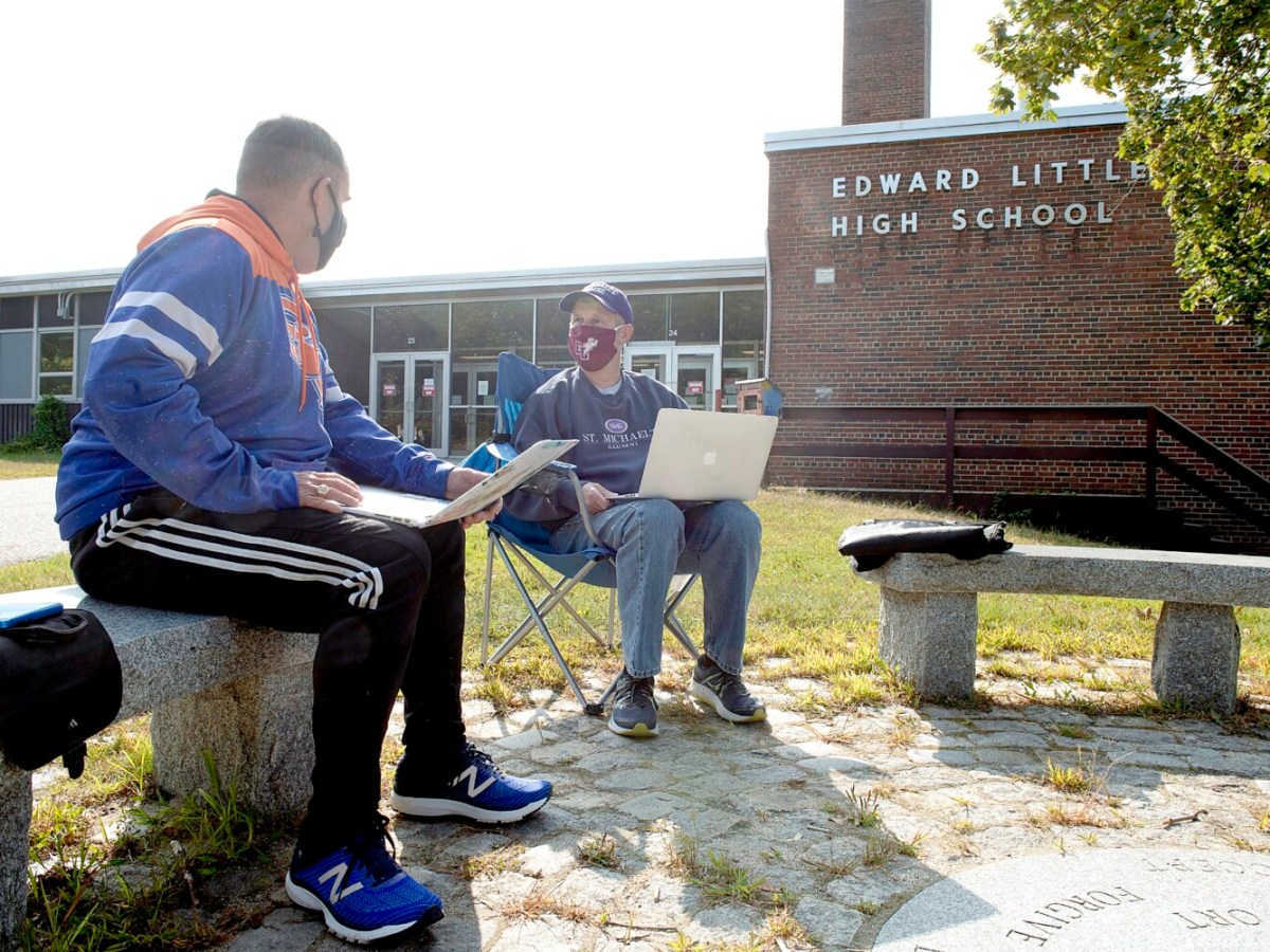 No masking the excitement of nervous students heading back to school in Lewiston-Auburn