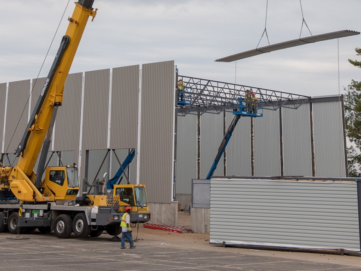A crane can be seen from all over Auburn as it lifts material for a new building at Auburn Public Works.