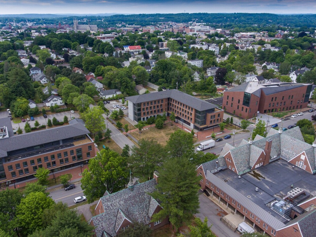An aerial view of Bonney Science Center that will open for the next semester at Lewiston college.