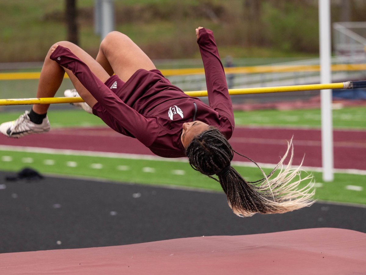 Jaden Baril wins despite falling at finish line; Makenna Drouin dominates her events; Larson Stone sets PR in high jump; with photos and complete results