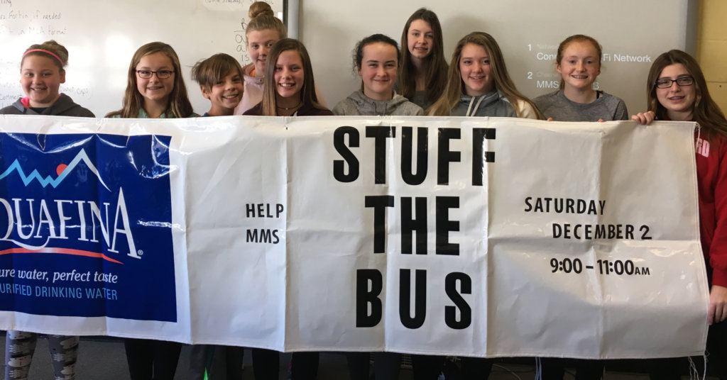 Students hoping to Stuff the Bus for Christmas basket fund