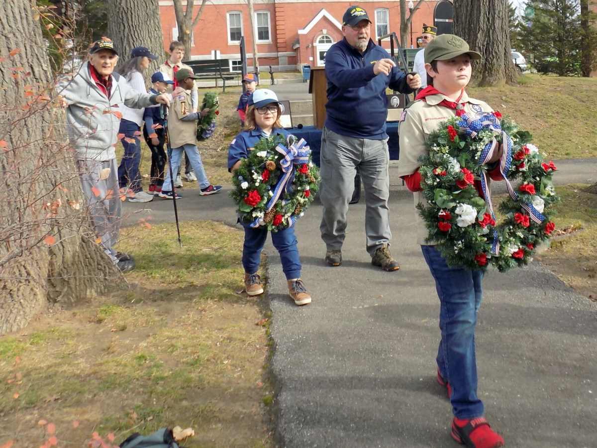Wreath laying ceremonies were held Monday morning, May 26, at the Teague World War I Memorial Arch and in Meetinghouse Park in Farmington.