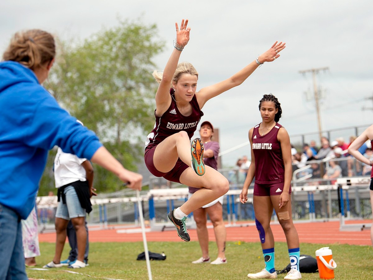 Lewiston boys, led by Jibril Holloman, and Bangor girls claim team titles. Lewiston’s Makenna Drouin wins three events and sets four school records. Several first-place finishes for Edward Little. Complete results included.