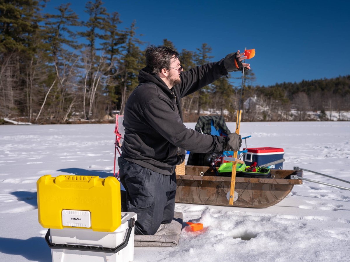 Kyle Locklin, 21, said he and his father have been ice fishing on Woodstock’s Bryant Pond for as long as he can remember.