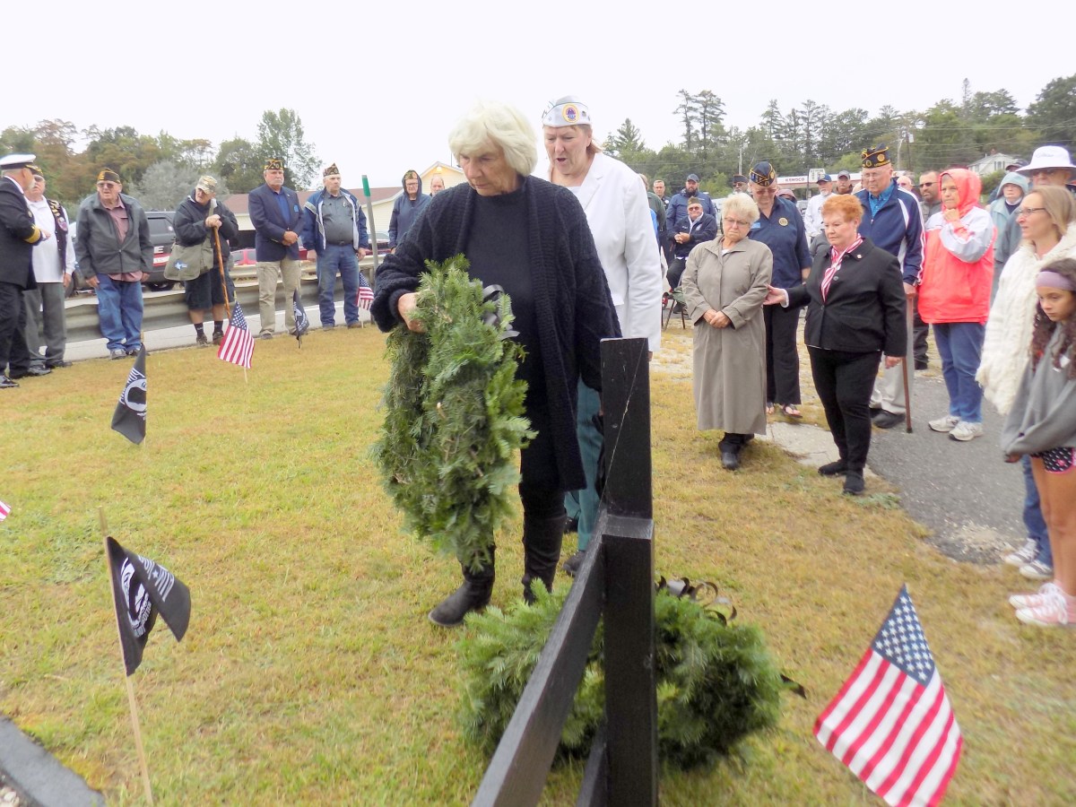 The local observance was held in two parts this year due to Hurricane Lee with wreaths placed at the POW/MIA monument next to Riley Road in Jay, with the remainder of the program held at VFW Post 3335, 64 Jewell St. in Jay.