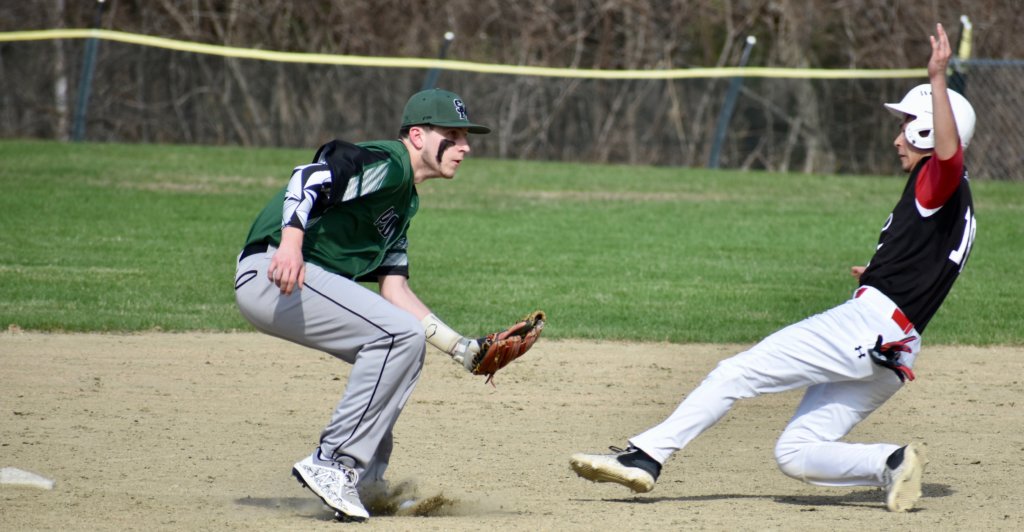 Spruce Mountain shortstop Nick Lombardi waits for the ball as Hall-Dale’s Akira Warren slides into second base in a baseball game at Griffin Field in Livermore Falls on Wednesday afternoon. LIVEMORE FALLS — Hall-Dale’s 10-run, third-inning flare-up was more than enough to ruin Spruce Mountain’s day. The undefeated Bulldogs (5-0) used five key hits and […]