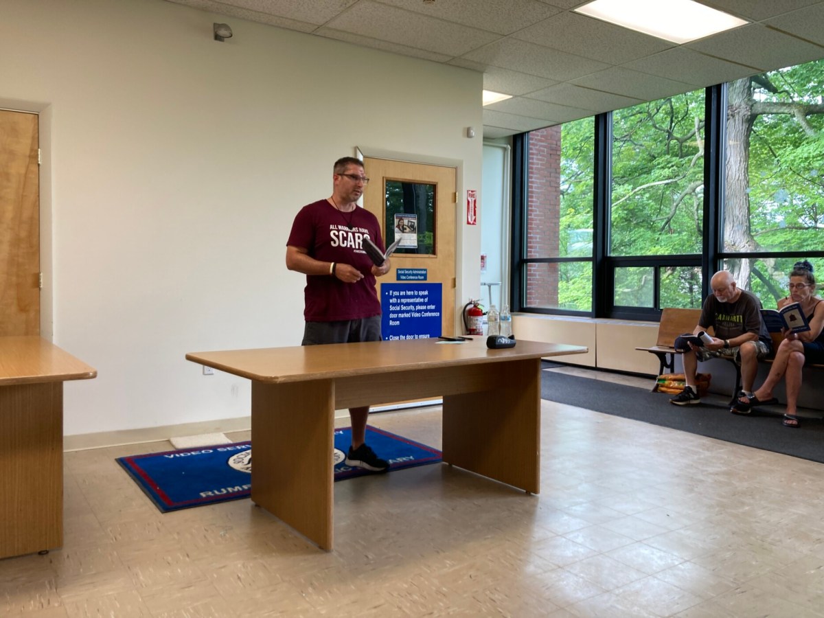 A crowd of about 40 people gathered at the library Thursday to hear Carrier read from his book, “To Ring the Bell,” about surviving cancer twice in his lifetime.