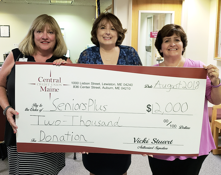 On National Senior Day, Aug. 21, Central Maine Credit Union donated $2,000 to SeniorsPlus of Lewiston. Betsy Sawyer-Manter, left, president and CEO, and Holly Zielinski, center, chief operating officer of SeniorsPlus, accept the check from Vicki Stuart, president and CEO of Central Maine Credit Union. SeniorsPlus is based in Lewiston and is responsible for the […]