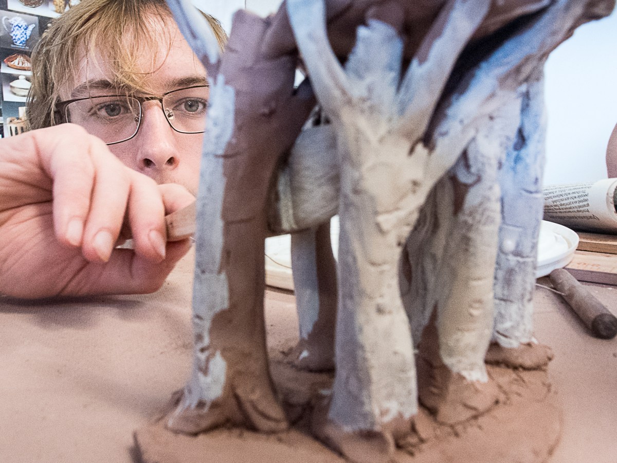 Bates College first year student Jake Lawlor applies a white base before firing the stand for a sphere he was creating in the Olin Arts Center on the Lewiston campus Monday afternoon. It was part of a project in his Ceramic Design and Techniques class taught by Susan Dewsnap. Bates College first year student Jake […]