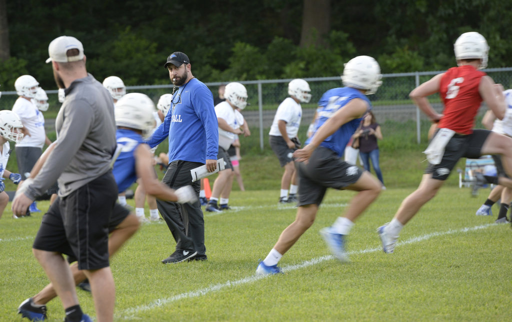 Head coach Mike Lichten watches his team run drills at the University of New England’s first football practice of the season Thursday. (Shawn Patrick Ouellette/Portland Press Herald) BIDDEFORD — On the backs of their helmets, near the base of their necks, are three words: Storm The Gates. The initial foray came Thursday night, when the […]