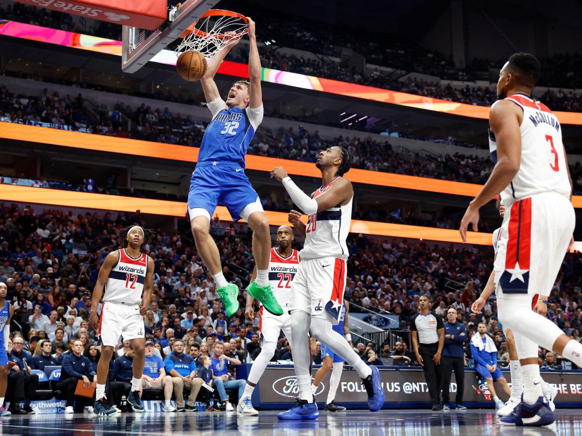 The Newport native has 15 points and 10 rebounds to help Dallas earn its second win of the season.