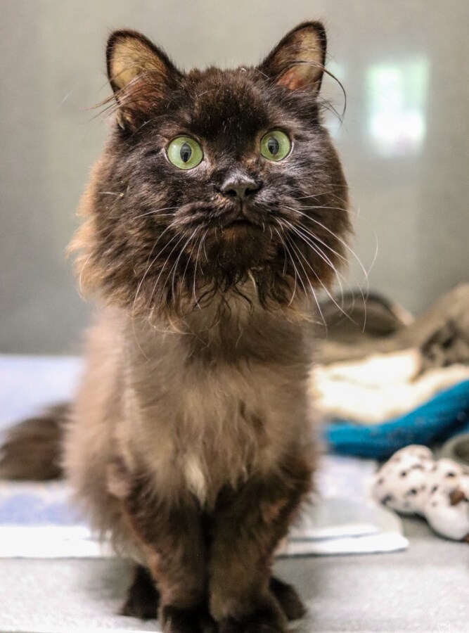 Six year old Gabriel is a tactile cat. He loves to reach out and touch people. His favorite thing is to climb up on a shoulder and snuggle in for a hug. Gabriel is a long haired cat. He was recently given a hair cut because he arrived at the shelter with mats in his […]