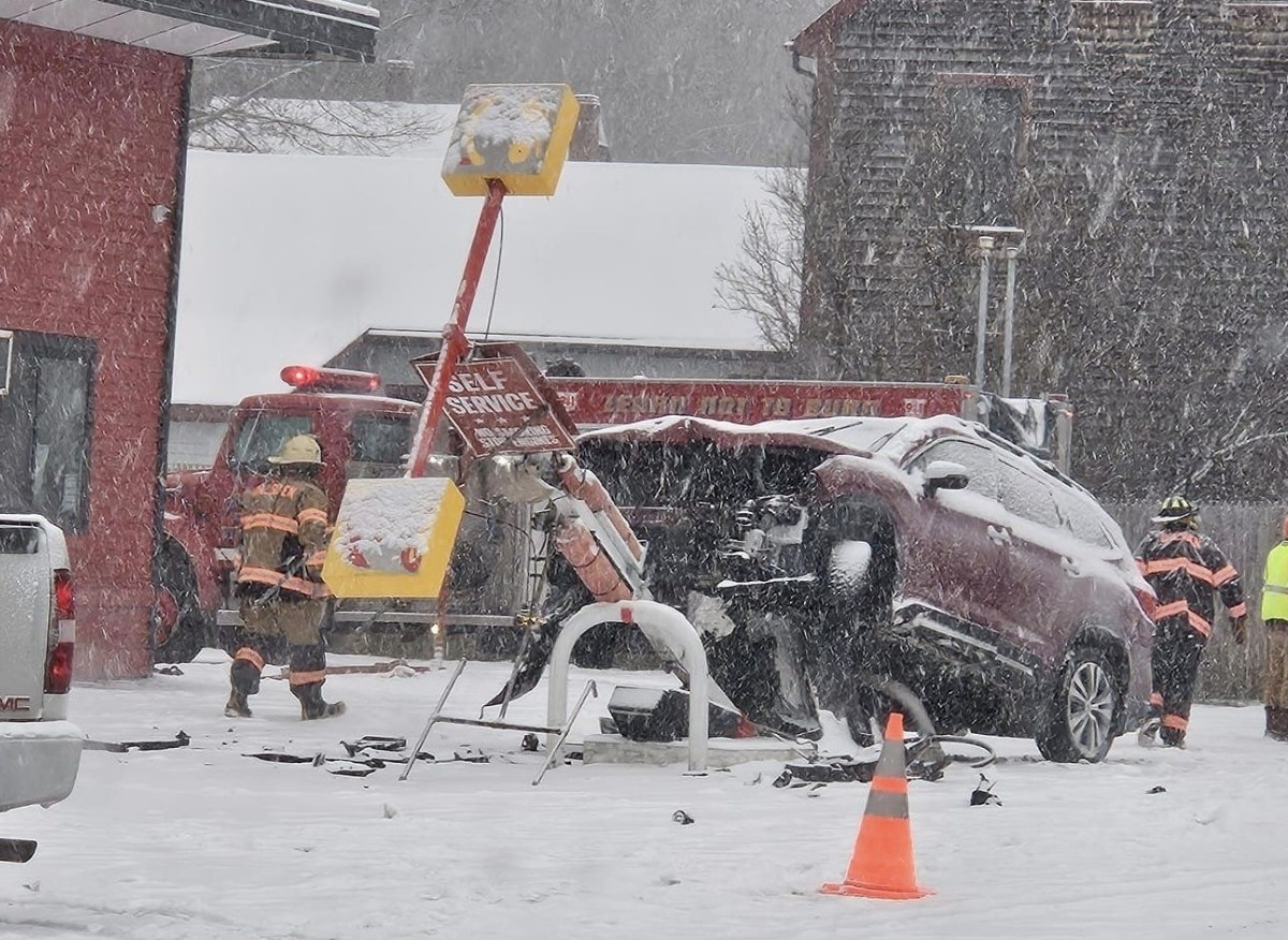 Historic gas pump taken out in snowy crash at Dresden Take Out