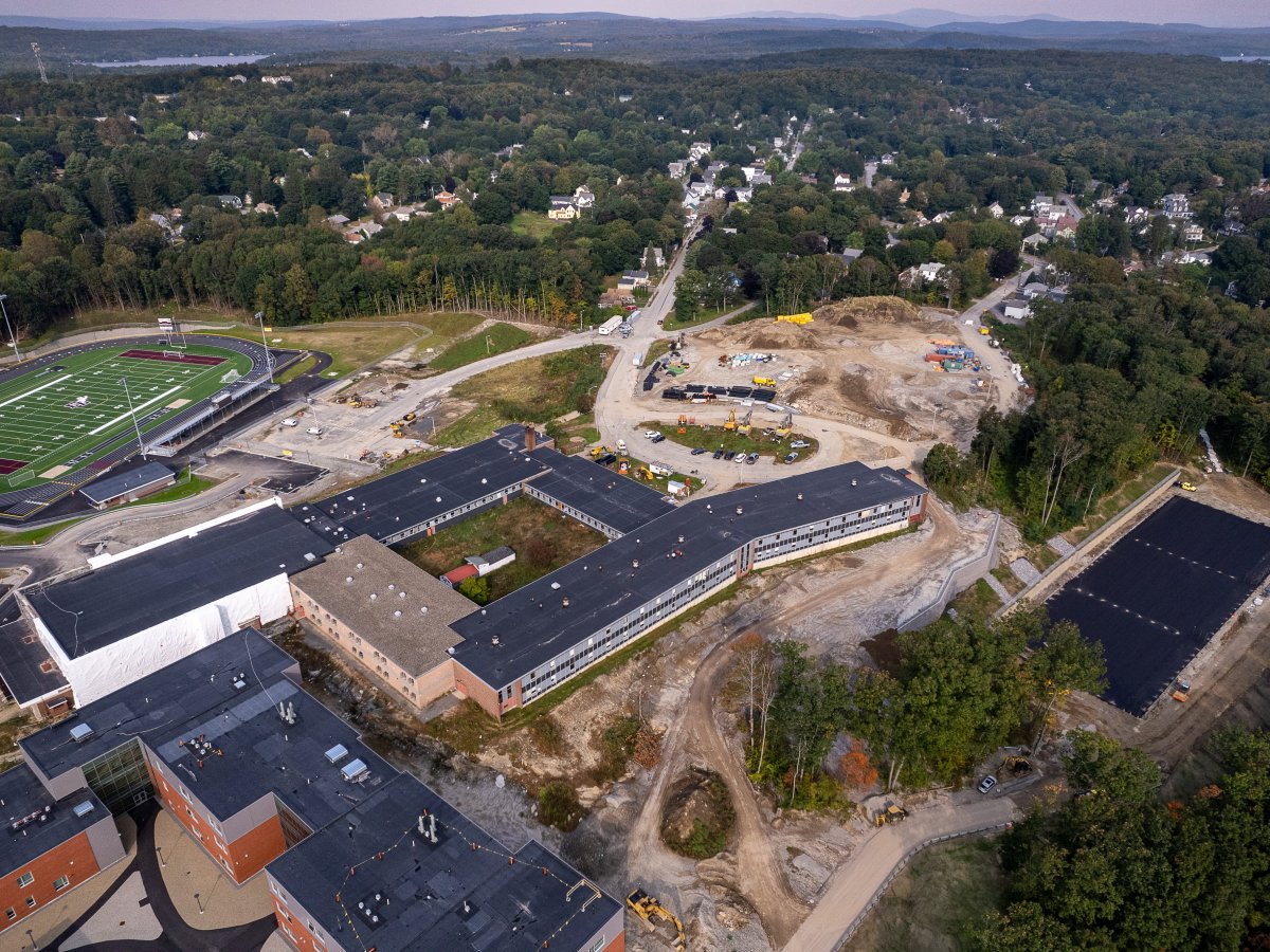 Demolition of the old school begins as new tennis courts and athletic fields construction continues.