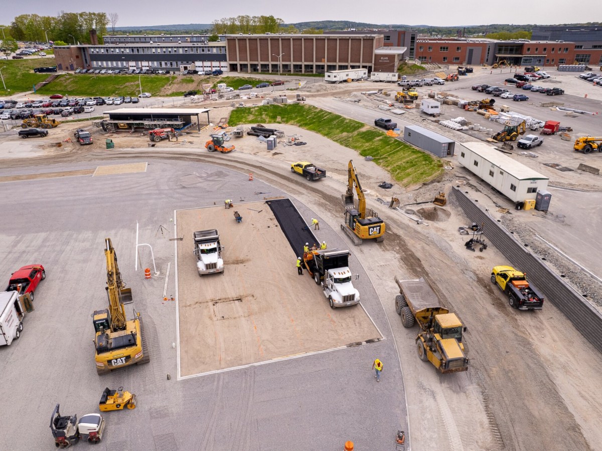 An aerial view on Monday morning of the massive construction project at Edward Little High School in Auburn.