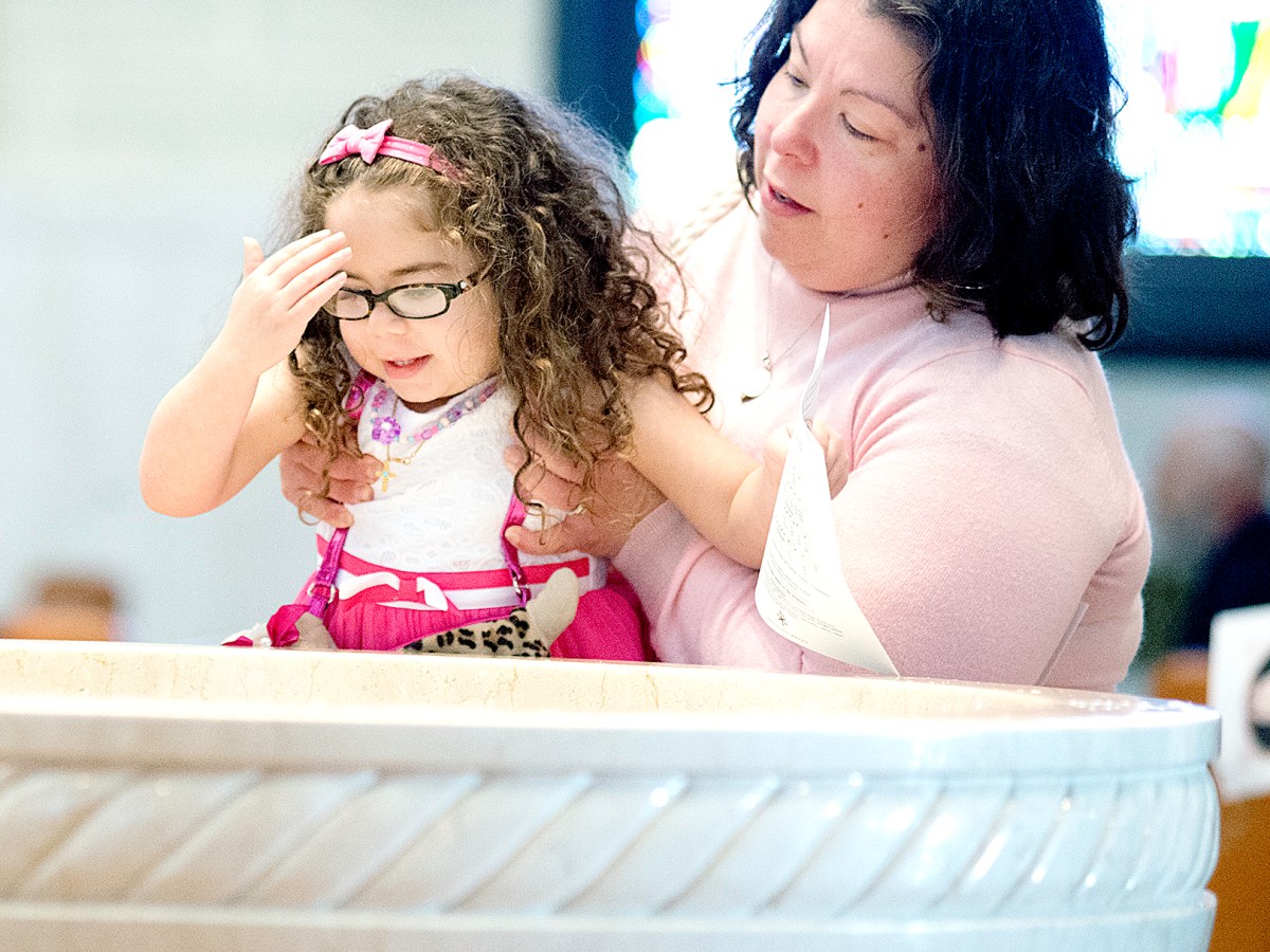 Cara Moya of Lewiston lifts her 4-year-old daughter, Veronica, up so she can make the sign of the cross with holy water prior to the start of Easter morning Mass at the Basilica of Saints Peter and Paul in Lewiston on Sunday. More than 800 people celebrated Easter by attending Mass at the Basilica. The […]
