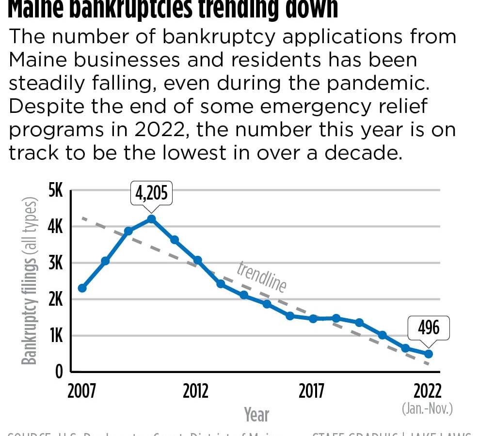 A predicted surge during the pandemic has not materialized, but some experts also warn bankruptcies could be on their way up again.