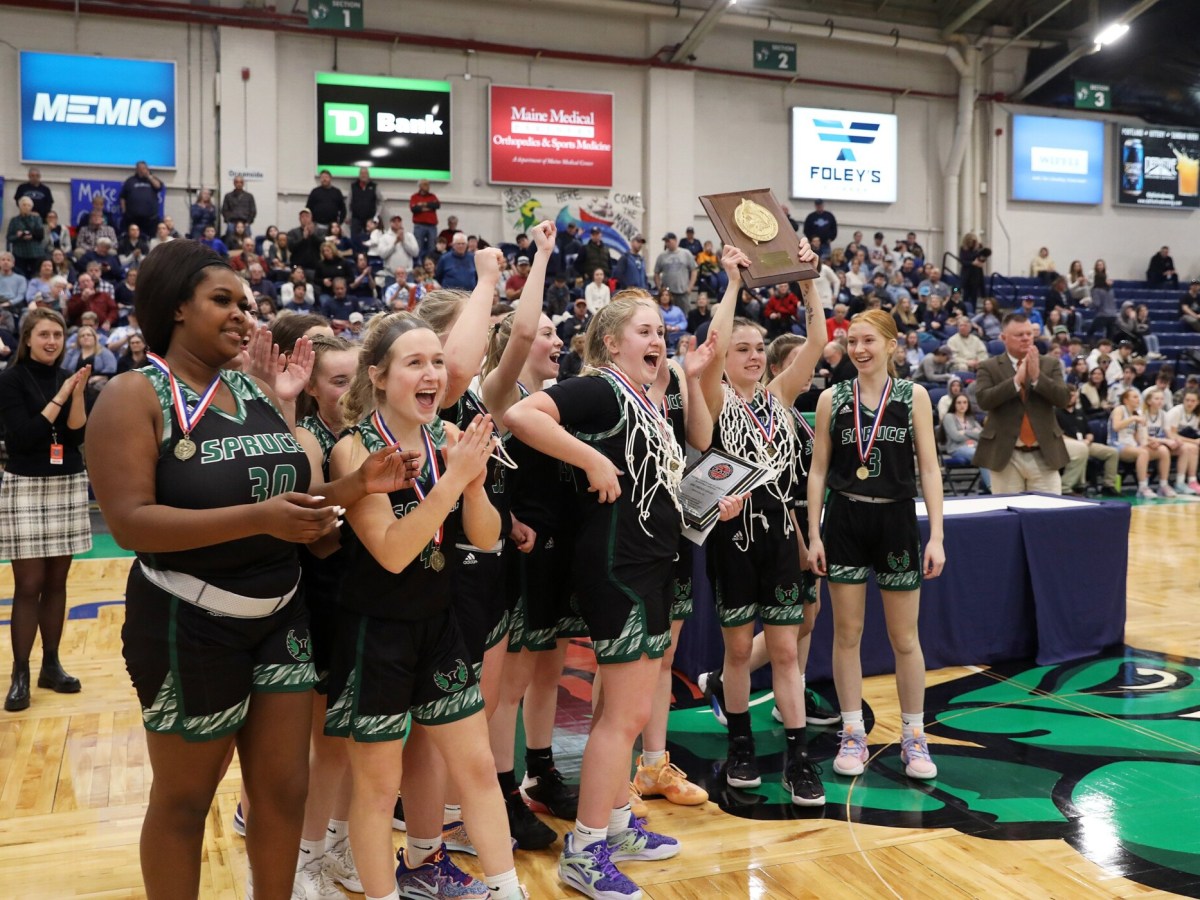 The Phoenix take on Ellsworth in the Class B state championship game at the Portland Expo on Tuesday night.
