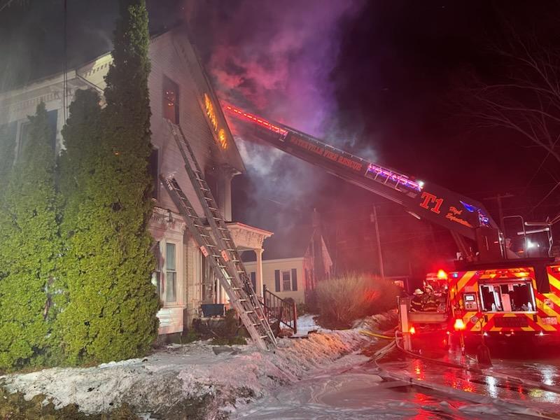 The Red Cross was assisting the people who rushed from the building early Monday on School Street, just west of downtown.