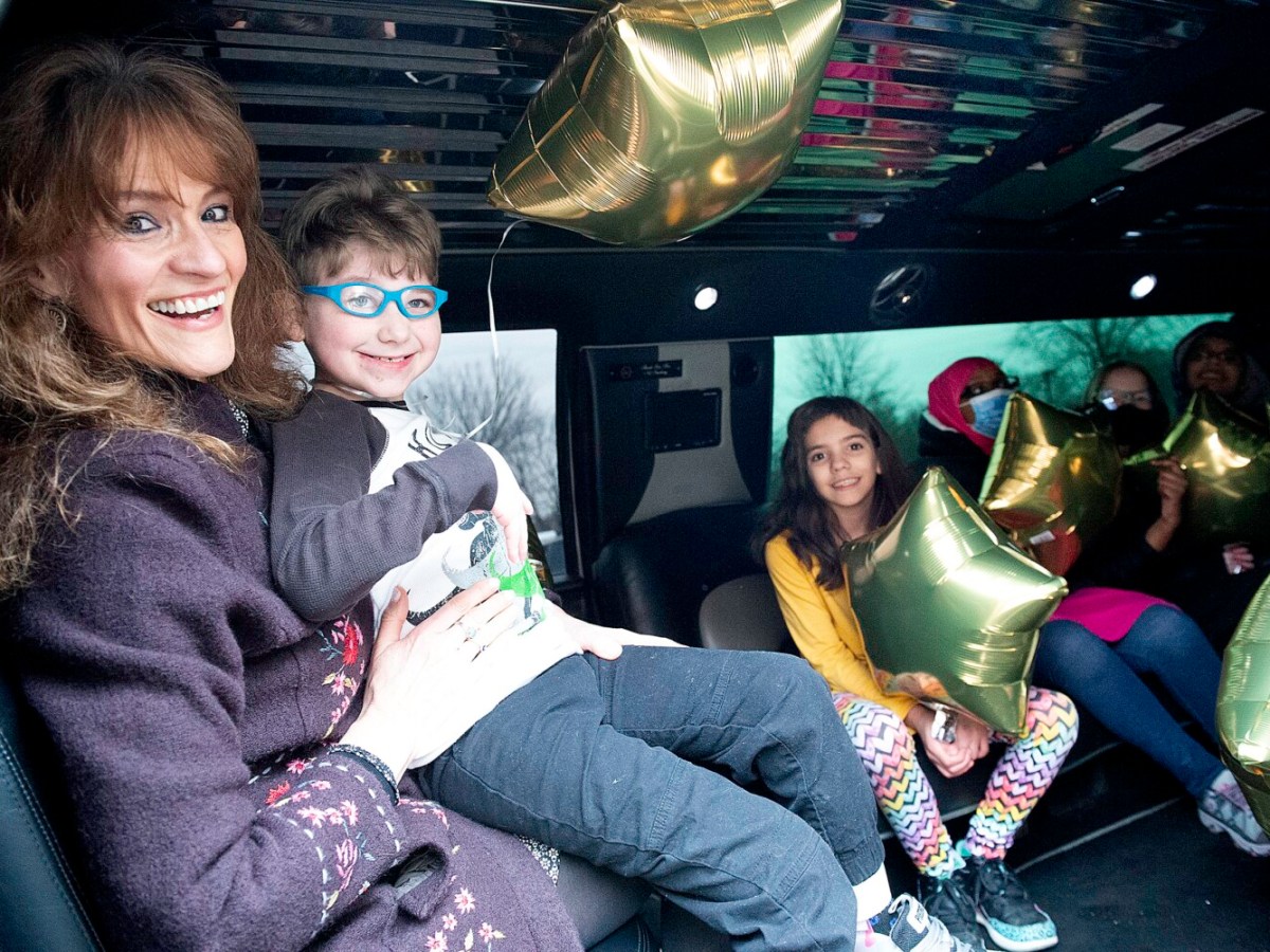 Lewiston teacher arrives at school by limousine after being recognized by Maine radio station.