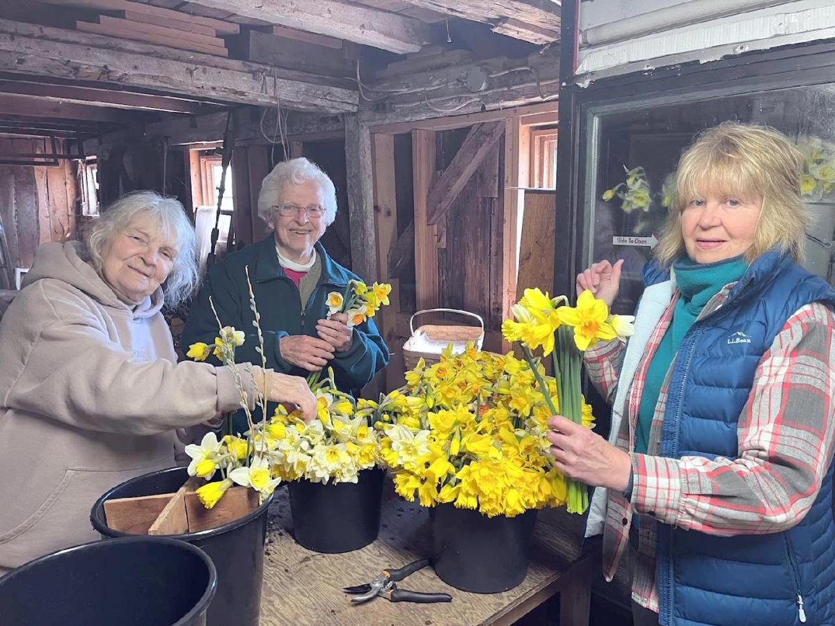 Daffodil bouquets from local gardens help support the Food Cupboard of Jay, Livermore and Livermore Falls.
