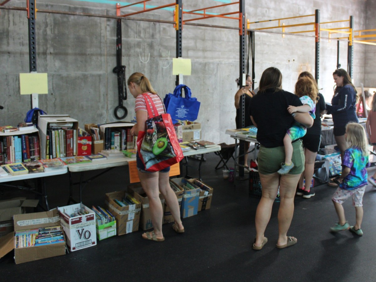 Several homeschooling parents put up items for sale, including books and other learning materials, to help raise money for their local homeschool cooperative.