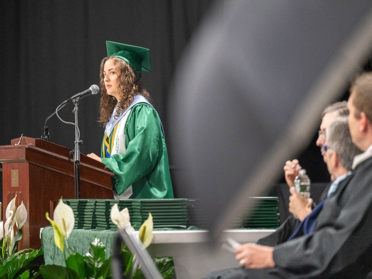Class of 2024’s adviser and keynote speaker, Nicole Sautter, urged the graduates to hold space for uncertainty.