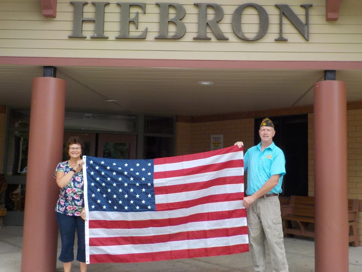 Rich Hatch, of Floyd A. Harlow Jr. Veterans of Foreign Wars Post 9787 of South Paris, presents Jamie Martin, principal of Hebron Elementary School, a new United States flag. Post 9787 replaced both the U.S. and Maine state flags, which had become unserviceable. Check out other upcoming area events!