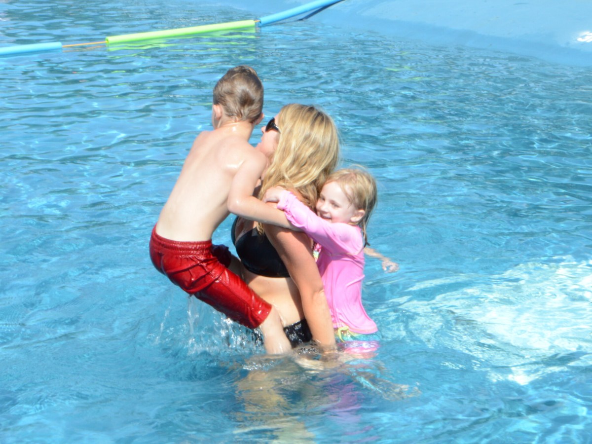 Family takes a dip in the wading pool Monday at Hippach Field in Farmington.