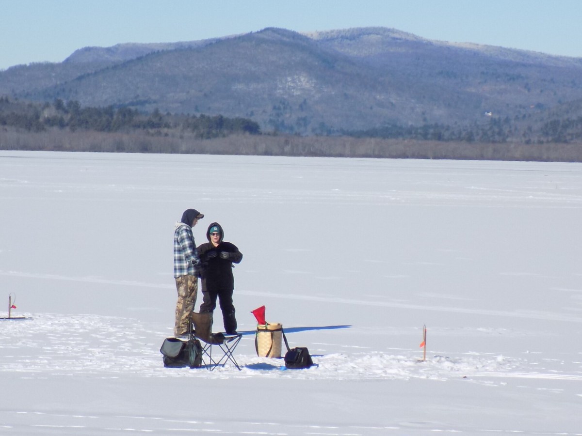 A good time to catch up is while waiting for fish to bite while ice fishing Sunday afternoon, Feb. 23, on Long Pond in Livermore.
